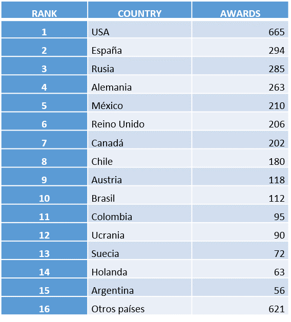 Este estudio presenta variables interesantes para tener en cuenta en su análisis; como por ejemplo el desarrollo de la industria independiente en cada mercado, la solidez de sus economías para invertir en premiaciones y la cultura festivalera de los países, donde cabe destacar la participación exitosa, de Estados Unidos, España, Rusia y Alemania en eventos publicitarios.