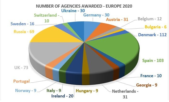 Interesantes resultaron las conclusiones que arrojó el análisis realizado por TopFICE para conocer a las agencias independientes de Europa y América, con mejor desempeño en el año. Fueron 59 países revisados, 89 festivales locales, internacionales y especializados que fueron analizados y 1190 las agencias estudiadas, que obtuvieron por lo menos un premio durante el periodo evaluado: 1 de septiembre / 2019 al 15 de noviembre / 2020. Descubra a continuación, algunas de las conclusiones más relevantes: