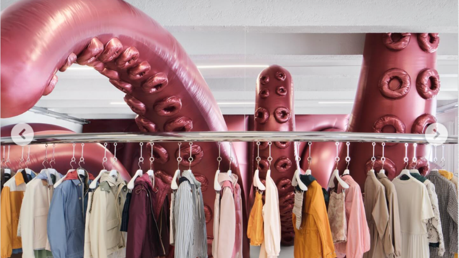 Lo más interesante de la instalación es cómo interactúa con la arquitectura: sus formas no son estáticas, sino que se expanden, se adaptan y generan una tensión visual con la rigidez del espacio de 10 Corso Como. El resultado es un entorno diseñado para ser fotografiado y compartido, amplificando su impacto más allá del evento físico.