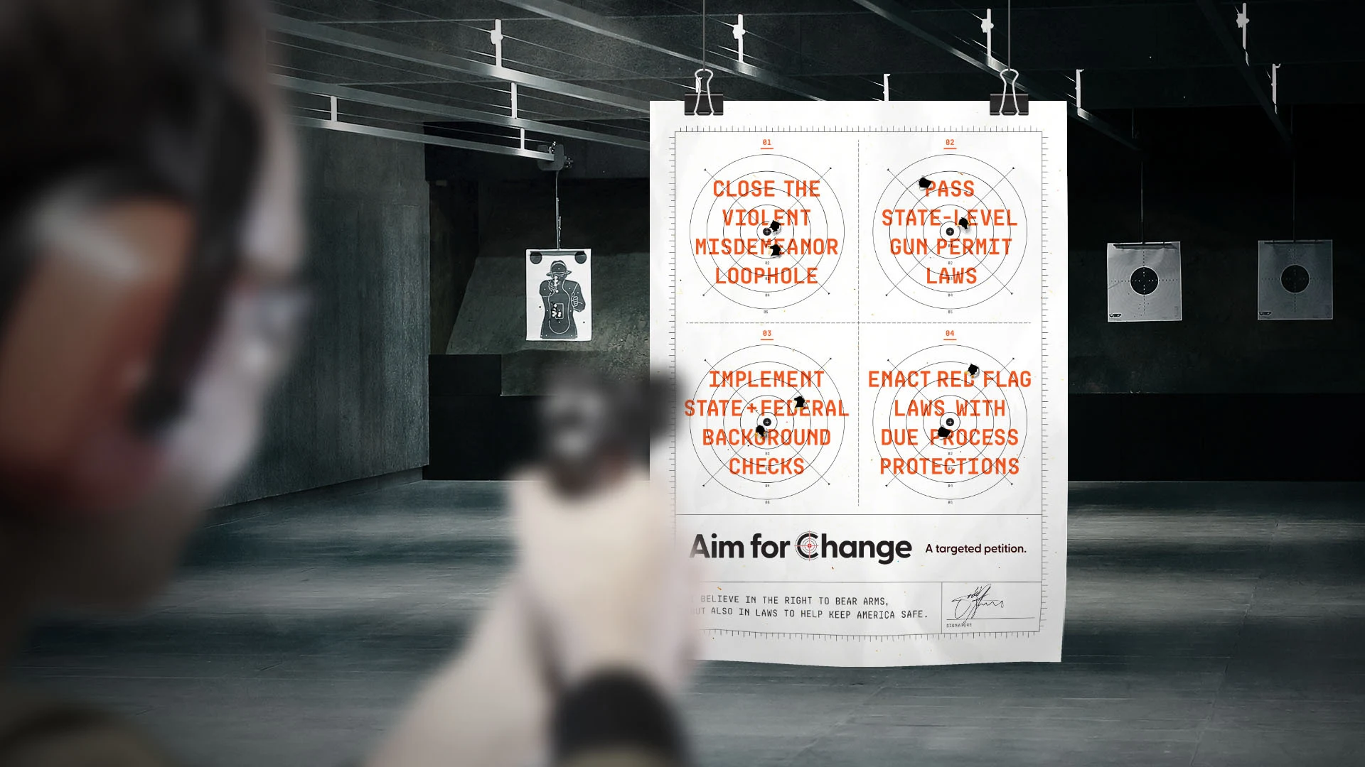 A new campaign launched by bipartisan group 97Percent Advocacy and Wunderman Thompson takes aim at gun safety by giving voice to a group usually shut out of the conversation: gun owners. “Aim for Change” is a petition in the form of a shooting range target that features four gun safety laws, which 97Percent’s research shows are supported by gun owners and could reduce gun-related homicides by 28% and gun-related suicides by 6%.