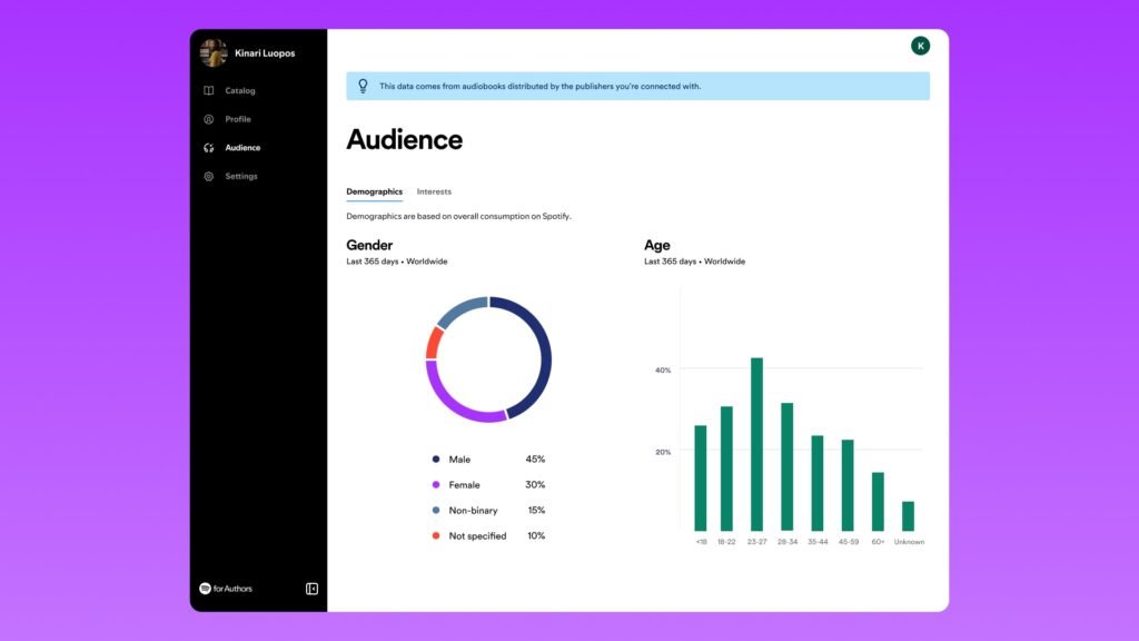 We believe that one of the best ways to support authors and publishers is by giving them access to the right tools and data. With Spotify for Authors, we’re giving our partners across the audiobooks industry more comprehensive insights and marketing features to make the most of their presence on Spotify.