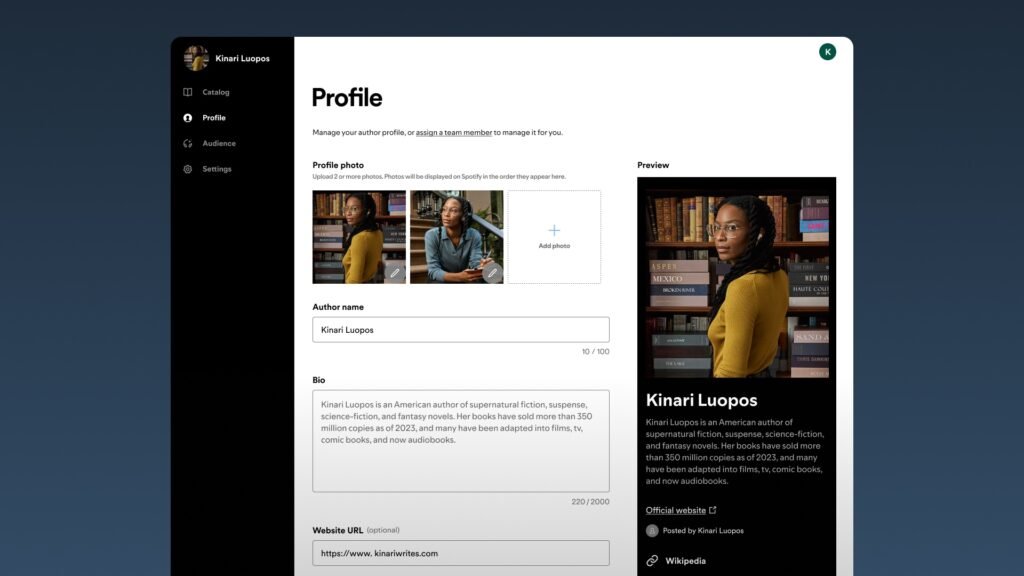 - Early access to author profiles, a new feature rolling out to Spotify so fans can easily discover more about the authors behind their favorite books.