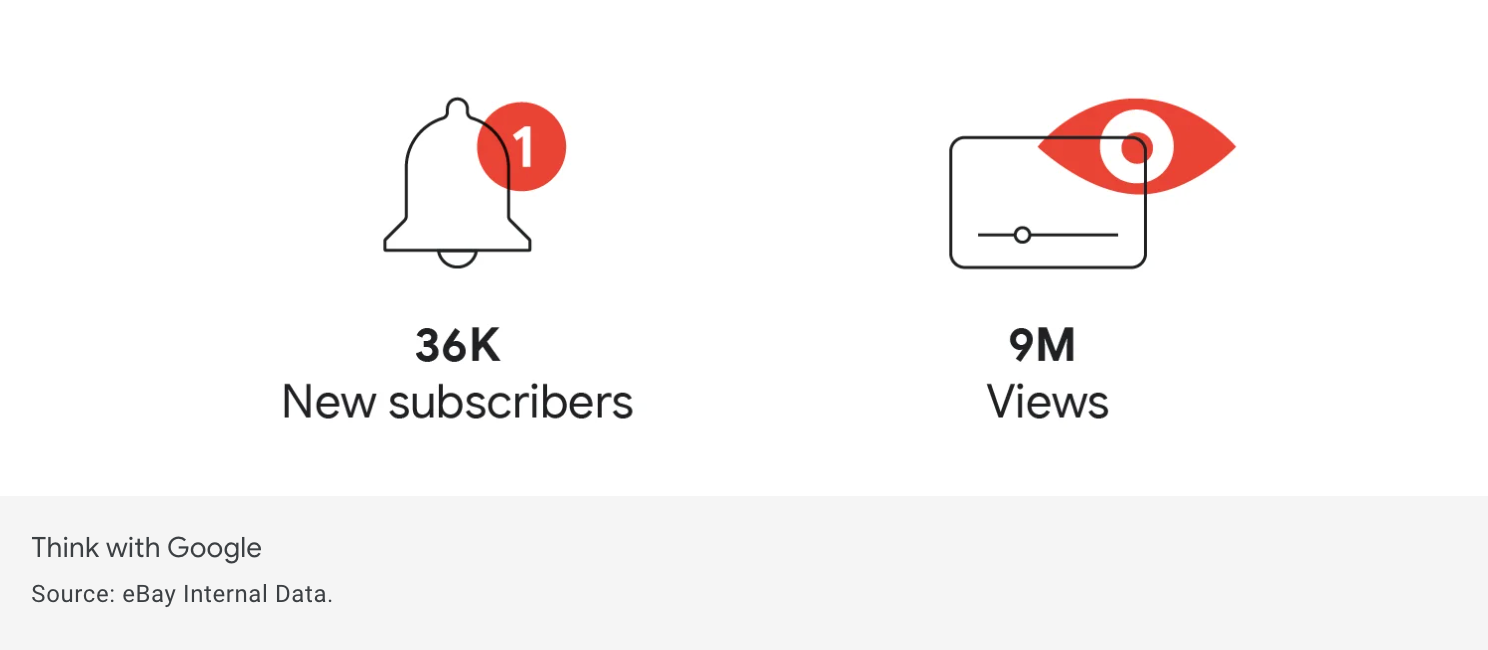 To maximize viewership, eBay paired episode drops with paid YouTube advertising, and the results were remarkable. The brand grew its YouTube channel subscriber count from 700 to over 37,000 subscribers — 606% above its goal — while generating more than 9 million views across episodes.