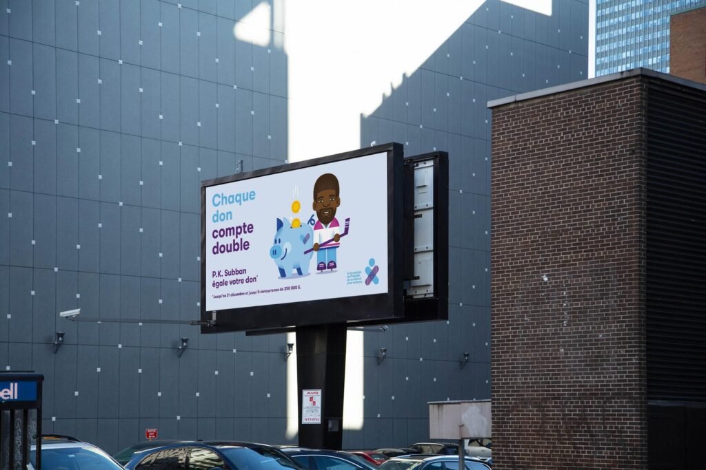 From December 3 to 31, 2023, the Montreal Children’s Hospital Foundation (the Children’s), in conjunction with Cossette, will be running its Every Donation Counts Double campaign in support of the Foundation’s pediatric fundraising initiative. Rolled out in various media, including TV, OOH, print, web, radio and La Presse+, the campaign features former hockey star P.K. Subban and his foundation, who have pledged to match each donation, up to $250,000.