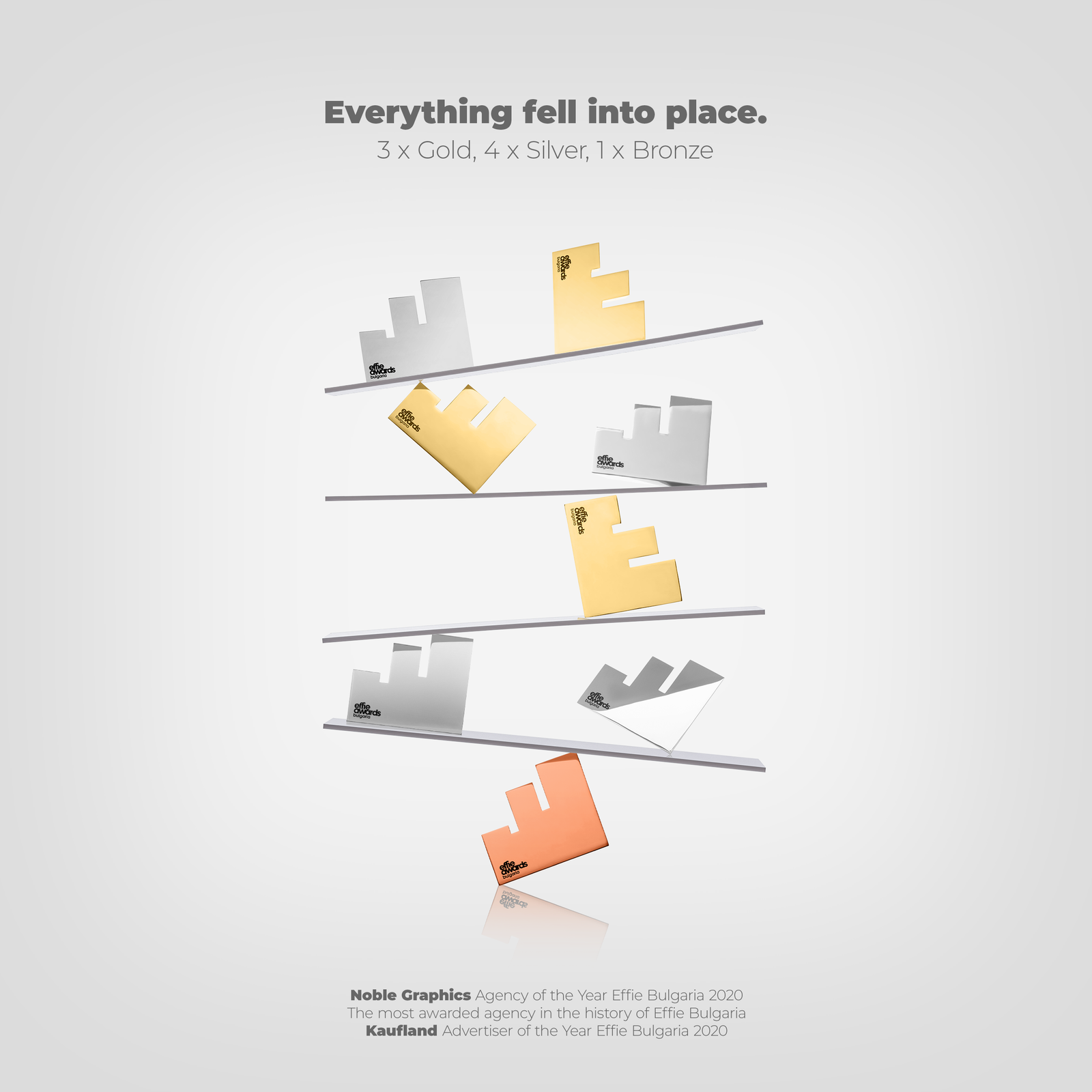 2021 starts really promising. Noble Graphics has been awarded the most effective advertising agency in Bulgaria at one of the most prestigious world festivals: Effie Awards. The 3 gold, 4 silver and 1 bronze awards out of a total of 8 nominations for the agency make this achievement undisputable.