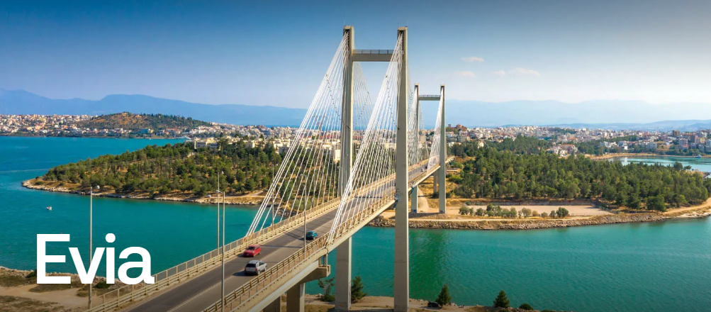Evia, the second largest island of Greece and the third in the eastern Mediterranean, is located close to the Prefecture of Attica. However, it has a somewhat mainland character, since two bridges – the modern, suspended one and the older, sliding one – link it to mainland Greece, called “Sterea Ellada”.