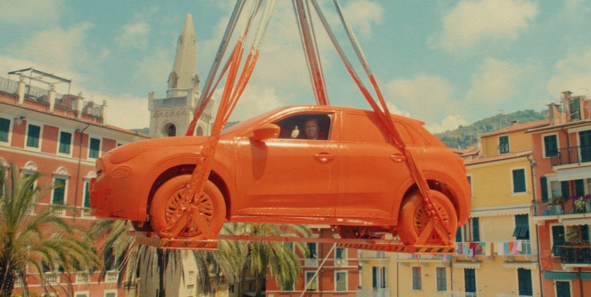 Creatively led by Leo Burnett Italia, this campaign harnesses the energy of Fiat – a joyful and colorful brand that is 100% Italian. Filmed in the Italian village, Lerici, the creative stunt comes alive on video which features Oliver sitting behind the wheel of a gray Fiat 600 and lifted 15 meters high above a large tub of orange paint. The car is slowly lowered into the huge cannister of paint and the, once gray, car disappears.