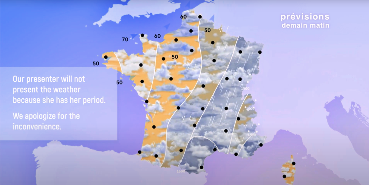 The unprecedented TV campaign was based on removing women weather presenters from the screens temporarily with the pretext that they were having their period, partnered with 9 TV channels, including 3 major national channels.