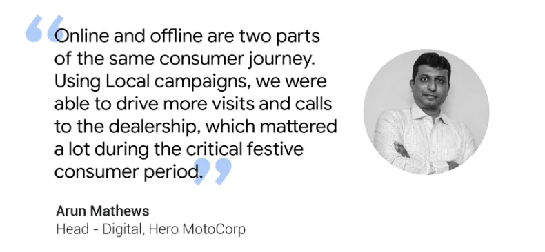 When auto brand Hero MotoCorp was looking to ignite demand for its motorcycles and scooters in the last festive season, it turned to Local campaigns, which have since been upgraded to Performance Max. The marketing solution, powered by machine learning, enabled the brand to automatically optimize its campaigns across Google’s ad channels and promote key information from its Business Profile, such as its locations, operating hours, and contact information, to drive calls and walk-ins to its dealerships. The effort paid off handsomely, with the brand attracting 126,000 store visits and 67,000 phone calls in that period.