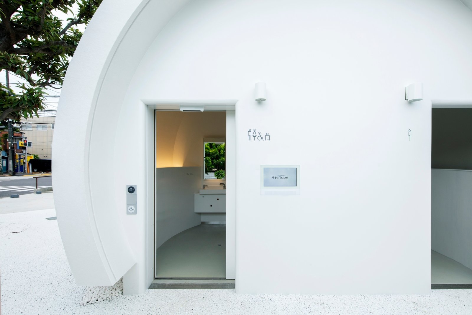 Pure white and spherical in design create the image of a clean fresh waterdrop or even a futuristic spaceship but aside from the aesthetic effects, the spherical roof/ceiling prevents odors from collecting in one place and allows for a freer flow of air.