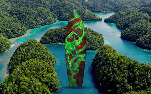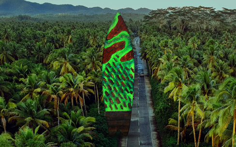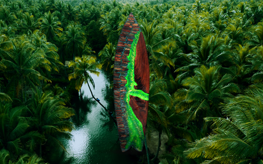 Project Re-Dew is an initiative that transformed broken typhoon wreckage into symbols of hope and recovery designed and created by BBDO Guerreo’s Creative Directors, Andi Olbés and Nikki Sunga. Used PET soda bottles were pulverized to make neon green resin. The neon resin then acts as a binding agent for the wooden wreckage from the typhoon to form the five unique “Scrapboards”, each representing an iconic location on the island Siargao. The five scrapboards weigh approximately 40kg each and are about 7 ft tall with details as follows: