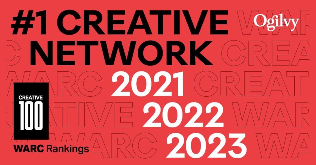 NEW YORK — MARCH 7, 2023 — Ogilvy is proud to announce that the World Advertising Research Center (WARC) has named Ogilvy the most creative agency network in the world for the third consecutive year. WARC today released the results of its annual Creative 100 ranking of the most creative agencies, networks, and campaigns in the world. The WARC Creative 100 is the definitive benchmark for creative success based on results from the most prestigious global and regional industry competitions.