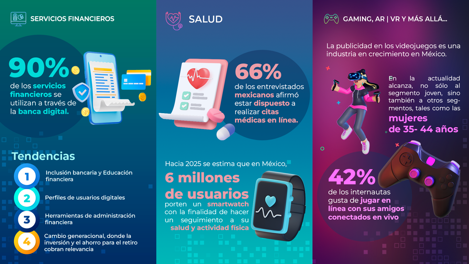 En coordinación con diversos actores, expertos de diversos rubros, se llevó a cabo un profundo análisis de tres industrias: Servicios Financieros, Salud y Gaming y su relación con el mundo digital.