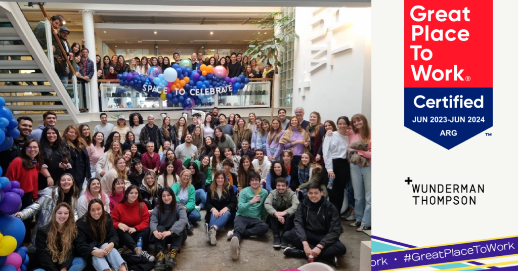 Wunderman Thompson Argentina se enorgullece de ser certificada por Great Place to Work (GPTW) lo cual resalta que las personas que integran la agencia se sienten reconocidas, escuchadas y a su vez valoran las políticas que fomentan la inclusión, la diversidad y la equidad en su espacio de trabajo.